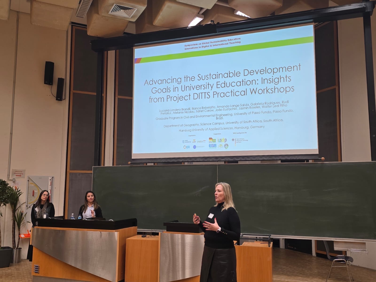 A participação das fundadoras da Greena, professora Luciana Brandli e pesquisadora Bianca Rebelatto, no simpósio realizado na Alemanha em dezembro de 2025, reforçou o protagonismo brasileiro no debate internacional sobre educação para a sustentabilidade. Representando a UPF e o Projeto DiTTS, ambas contribuíram ativamente para as discussões sobre a integração dos Objetivos de Desenvolvimento Sustentável ao ensino superior, compartilhando experiências do contexto brasileiro e perspectivas do Sul Global. Sua presença no evento fortaleceu o intercâmbio acadêmico, ampliou o diálogo com pesquisadores e instituições europeias e consolidou parcerias estratégicas voltadas ao desenvolvimento de soluções educacionais inovadoras, digitais e colaborativas para a implementação da Agenda 2030.
